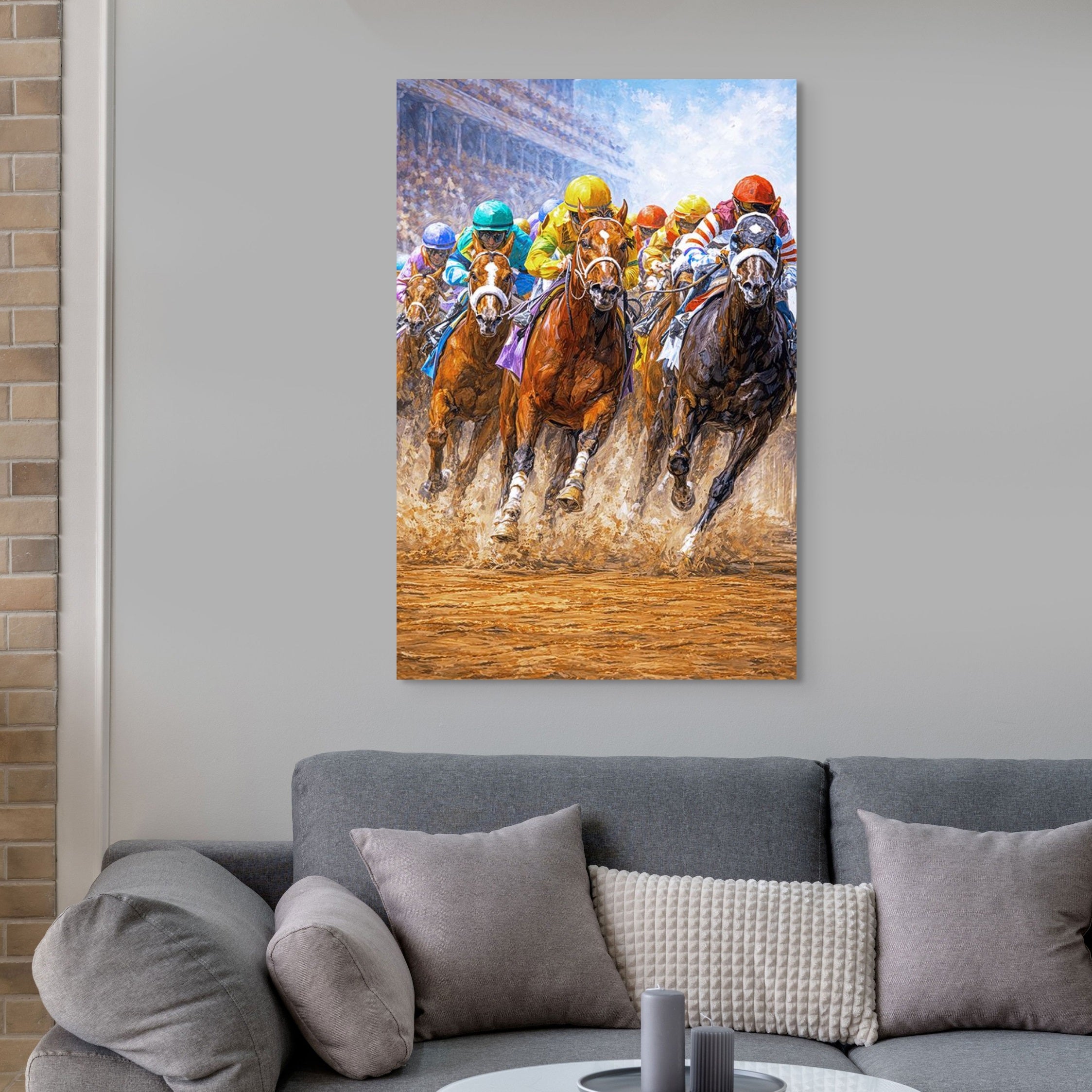 Ideal as a statement piece in a game room, study, or equestrian-themed décor, this horse race painting brings energy and excitement to any space. It serves as a powerful tribute to the beauty and drama of the homestretch, where every thoroughbred gives its maximum effort in pursuit of the winner’s circle.