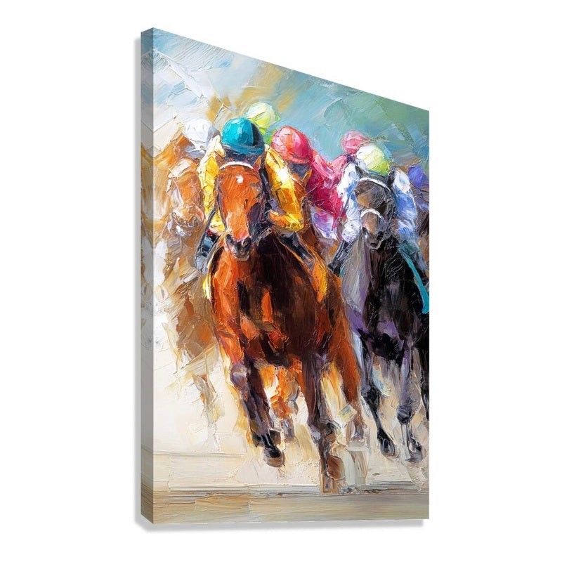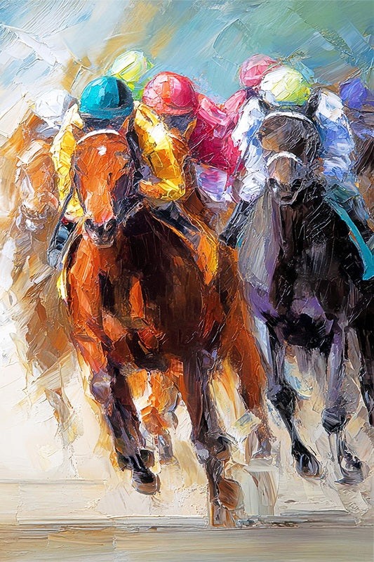 Last Push is the ideal original artwork for horse racing enthusiasts, equestrian collectors, thoroughbred owners, and lovers of bold, energetic sports painting. It makes a striking statement in a private home, racing club, luxury office, or sporting venue, commanding attention and sparking conversation wherever it is displayed. If you are looking for original equestrian wall art that captures the true spirit of thoroughbred racing — the passion, the power, and the unforgettable thrill of the final furlong — Last Push delivers it all.
